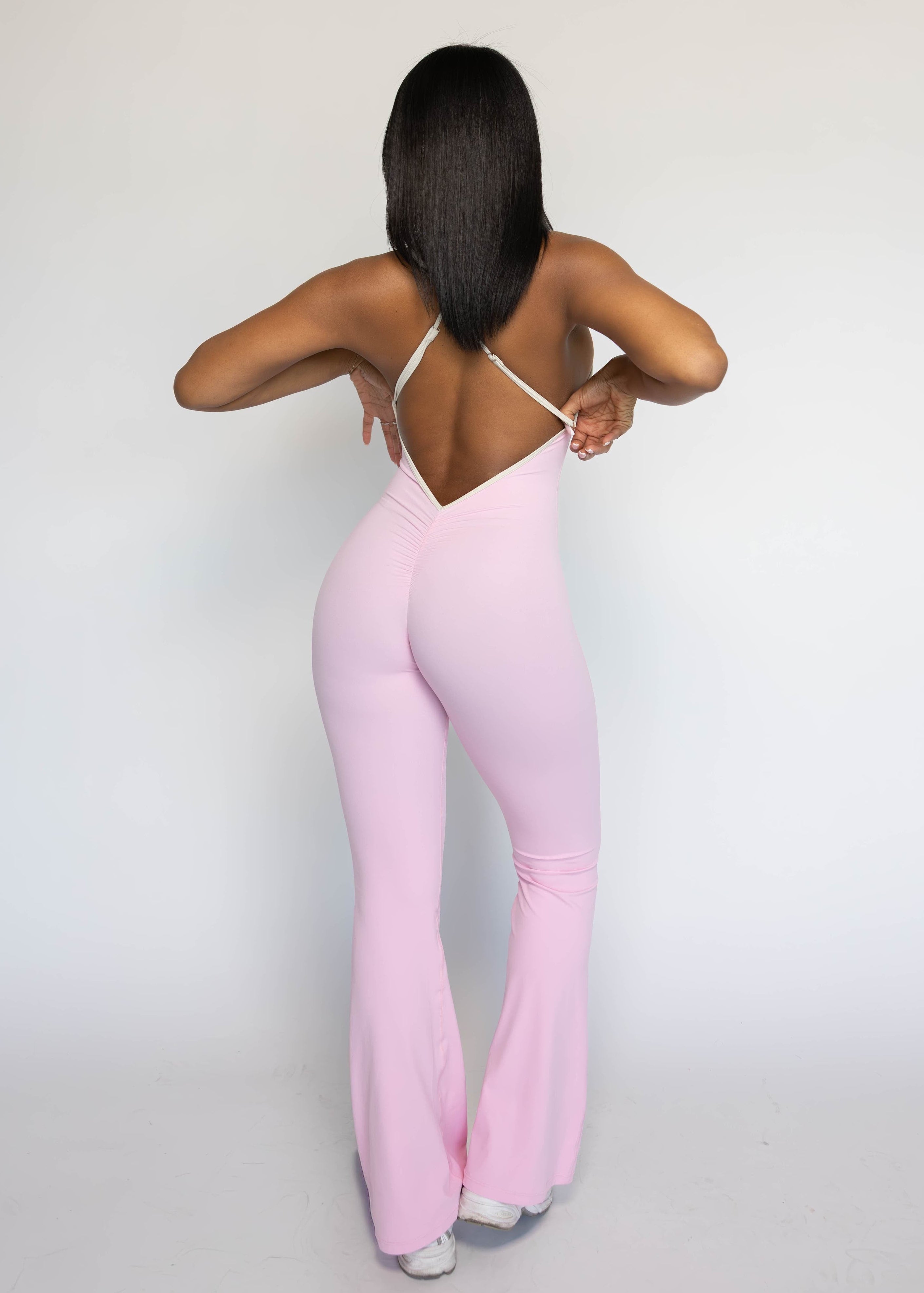 Our Align Jumpsuit is soft, stretchy, and snatches you in all the right places. Designed with a seamless front, built-in padding, open back and it has a scrunch in the back. Perfect for workouts or everyday wear.
